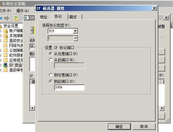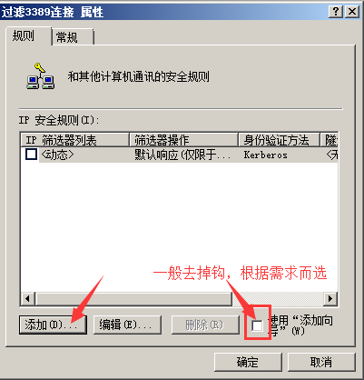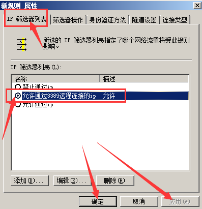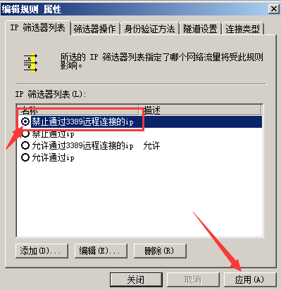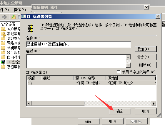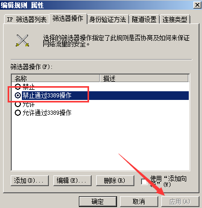 然后在添加一個禁止通過3389遠程連接的ip規則。