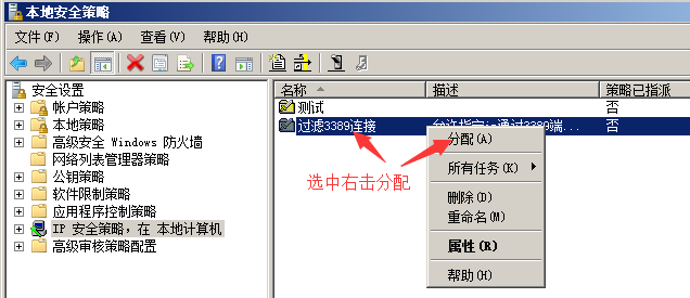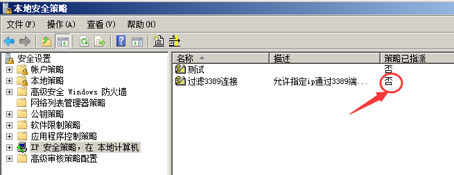 無法遠程連接到服務端,我們再把服務端ip安全策略這是成未分配,再測試一下客戶端是否能遠程到服務端。