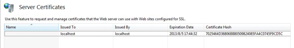 回到IIS,打開Server Certificates,發現證書已創建成功,如圖: