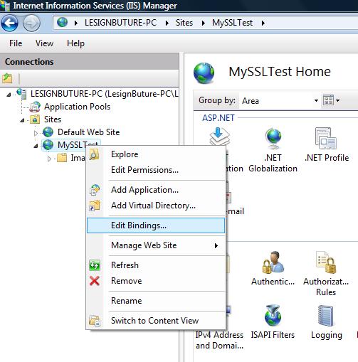 回到IIS,選中站點,右鍵,選擇Edit Bindings,如圖: