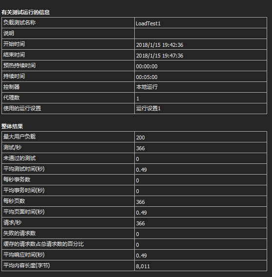 下面試一下壓力測試,用大微軟的VS2017進行壓力測試,細節我就不講了,貼了一些結果吧。