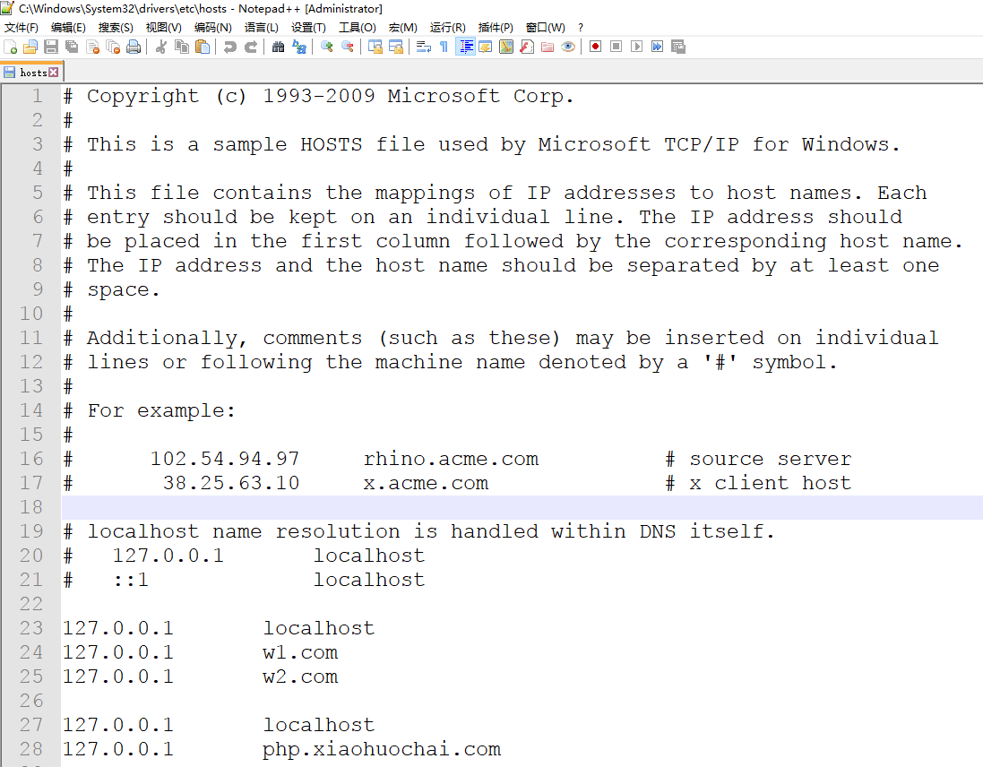 打開(kāi)hosts,新加一條記錄:127.0.0.1 php.xiaohuochai.com