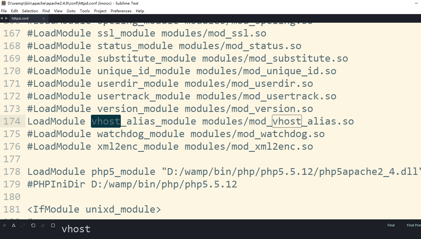 2、搜索到#Include conf/extra/httpd-vhosts.conf,將#刪除