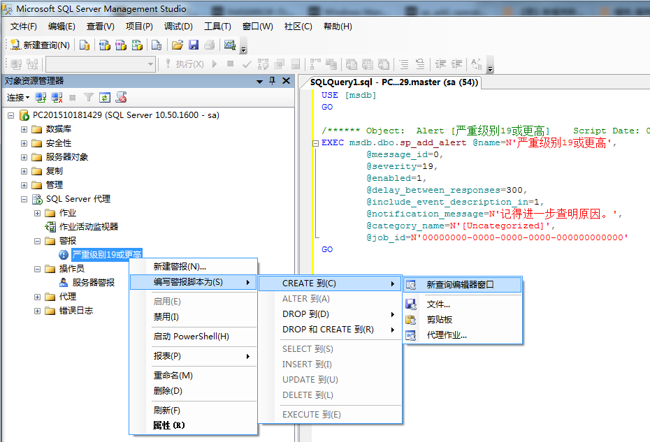 當然你也可以通過sp_add_alert的系統存儲過程來創建。關于這個存儲過程的文檔在這里:https://msdn.microsoft.com/zh-cn/library/ms189531.aspx 或者直接從SSMS里創建,如插圖7所示。