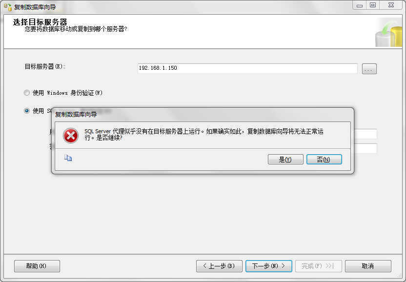 依次選擇源數據庫服務器與目標數據庫服務器,和SSMS的任務差不多,看來跨服務器復制數據庫也并不復雜,點擊下一步,提示