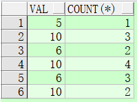 SELECTval,COUNT(*)FROM(SELECTID,val,rank() OVER(ORDERBYID)-rank() OVER(PARTITIONBYvalORDERBYID) xFROMLCY)GROUPBYval,xORDERBYMIN(ID);
