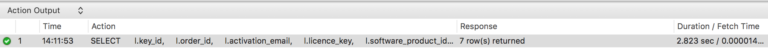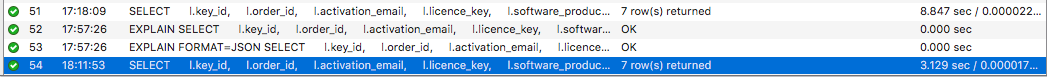 我們知道這是一個關(guān)于安全的賭注,在posts 表中software license 行是通過order_id 來跟 WooCommerce order 相關(guān)聯(lián)的,這在PHP 插件代碼中是強(qiáng)制的。讓我們移除join 來看看有什么提升沒有: