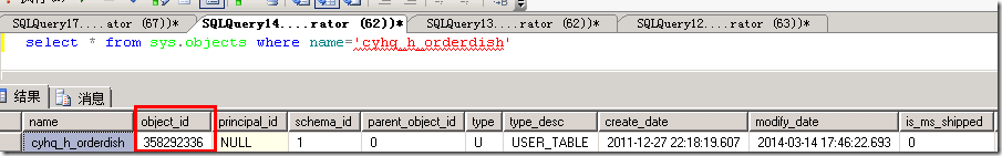 案例分析: 我們來查看一個表的存儲結構,我們在此使用的表是一個生產表,共有1億多條記錄,查看表的object_ID,如下圖所示: