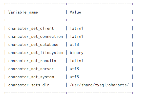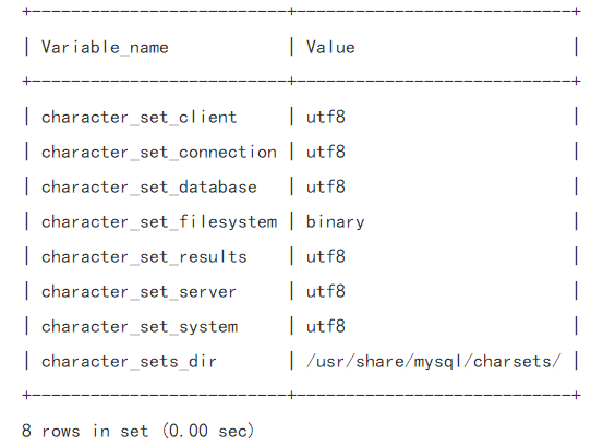 設置完成后,再次執行命令:show variables like 'character%';