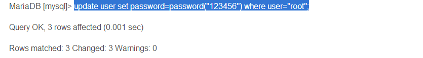 第四步:由于之前沒有配置密碼,執行mysql -uroot, 空密碼登陸,登陸后切換數據庫:use mysql , 這個時候可以設置自己的密碼了,執行命令:update user set password=password("123456") where user="root";