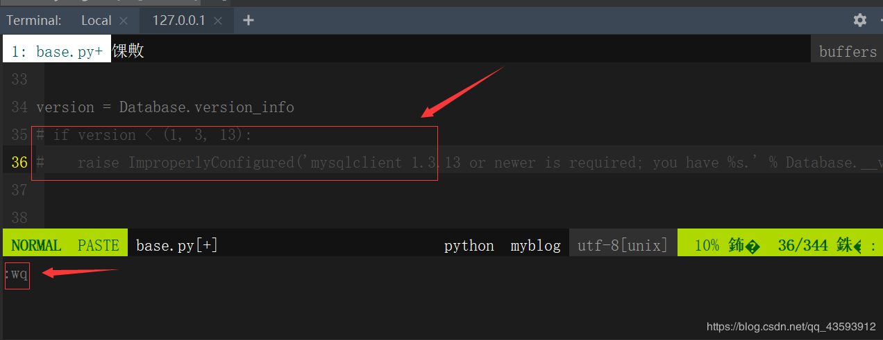 使用vim進入/home/pyvip/.virtualenvs/myblog/lib/python3.6/site-packages/django/db/backends/mysql/operations.py中