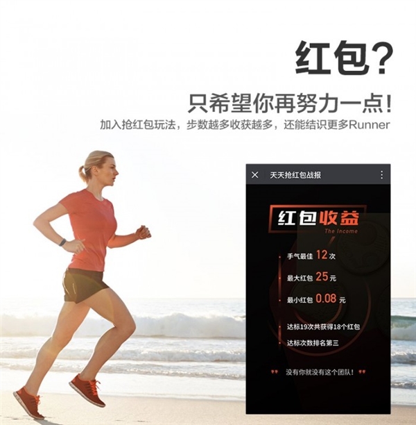 既然是騰訊投資參與深度定制的手環,所以玩法上就一定會有所突破,當然它主要強調的也是社交功能,比如引入團隊PK機制,加入搶紅包玩法等,這絕對是其他手環所不具備的。