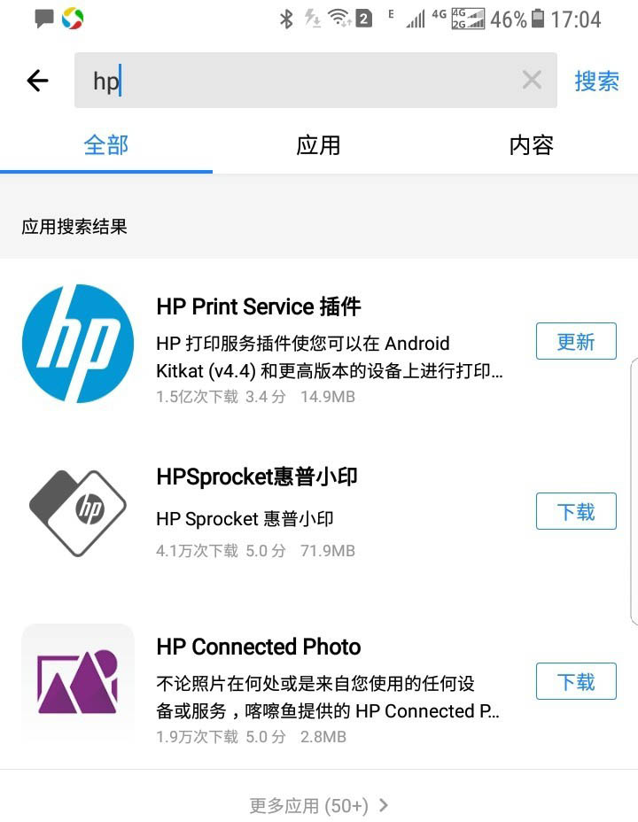 2、然后就是,在手機(jī)APP市場搜索HP無線打印的插件,下載hp print service插件件。