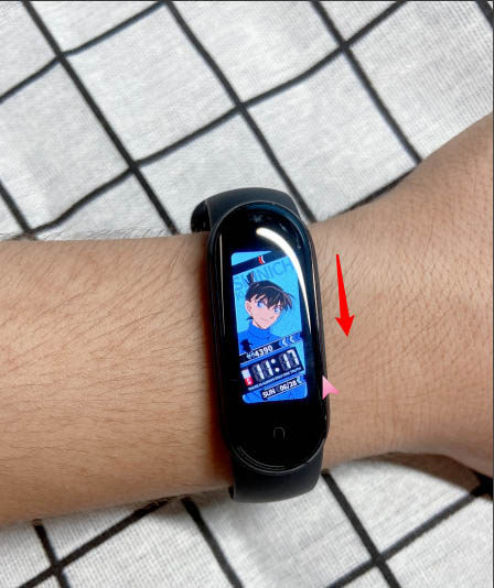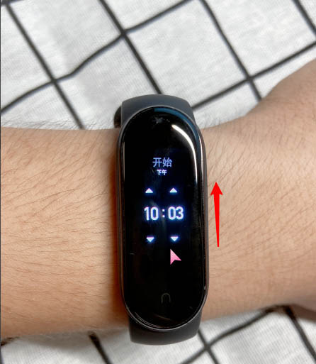 1、自定義勿擾模式需要在手環(huán)設(shè)置。點(diǎn)亮手環(huán)屏幕后,向下滑動(dòng)。
