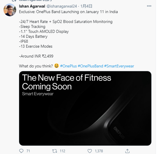 1月5日消息,日前,一加印度公司在社交平臺(tái)上暗示該公司即將推出可穿戴健身設(shè)備。外媒稱,不出意外,該款產(chǎn)品正是一加的第一款可穿戴設(shè)備OnePlusBand(一加手環(huán))。