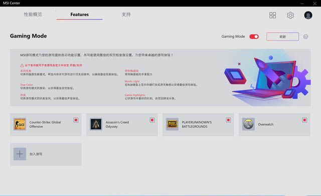 安裝之后你想要的功能就會出現在菜單欄里,這時候可以自由進行調控,而且MSI Center支持中文,各項功能都有詳細的介紹和描述,不用擔心不會操作的情況出現。