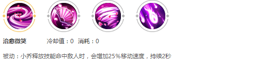 小喬每次釋放技能命中敵人之后就會提升自身4分之一的移動速度,你會明顯受到小喬技能打到人忽然自己走的就特別快了,有這個技能,會玩小喬的不會讓敵人貼到自己的邊。