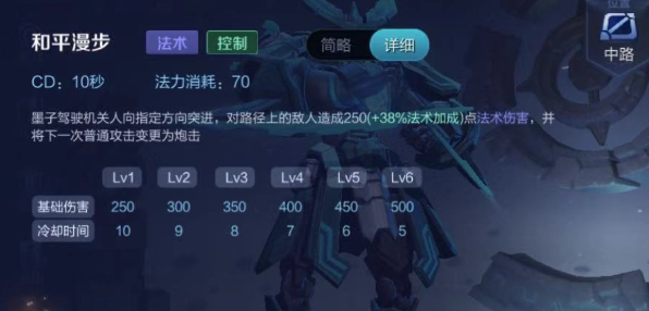 1、墨子的位移技能,墨子像指定的方向釋放一技能,對位移路徑上的敵人造傷害。