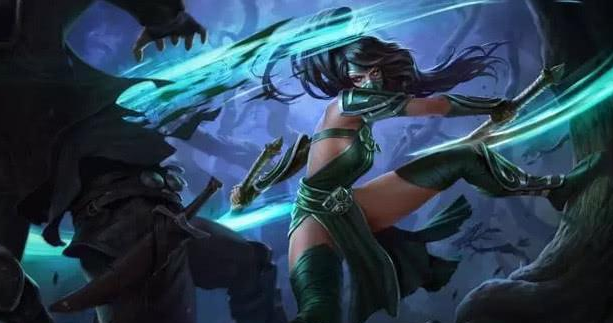 雙刀、蒙面、女刺客這些細(xì)節(jié)組合到一起,并且還有墨綠色的配色很容易讓人聯(lián)想到英雄聯(lián)盟里面的離群之刺阿卡麗,不知道黃月英的技能是不是會(huì)和阿卡麗類(lèi)似呢?如果真是這樣的話(huà),那又是一個(gè)強(qiáng)勢(shì)的脆皮收割機(jī)。