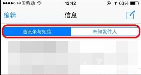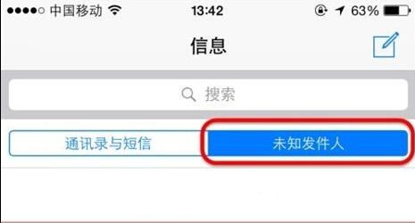 5、在打開【信息】,在搜索框下方可以看到【通訊錄與短信】和【未知發(fā)件人】?jī)蓚€(gè)標(biāo)簽了。