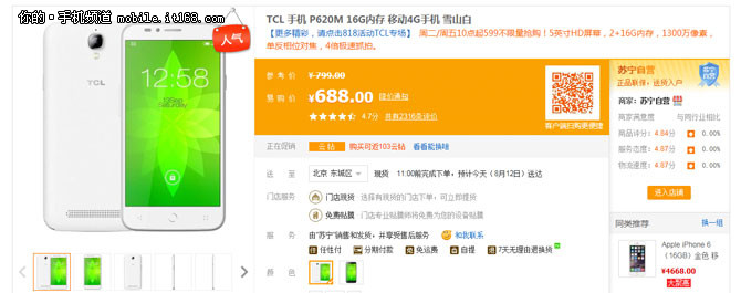 TCL P620M作為一款599元手機具有不俗的性價比,TCL P620M搭載了一顆MT6732 64位四核處理器,配備2G RAM+16GB ROM,并采用了一塊5.0英寸720P屏幕,TCL ono P620M定價僅需599元,目前蘇寧易購每逢今天10點都有現貨原價599元發售,感興趣的朋友趕緊前往官方商城下單吧。