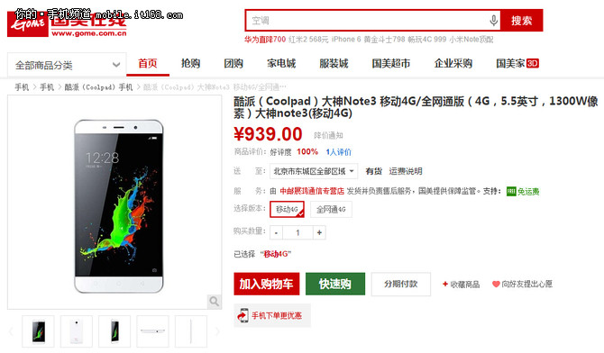 直達鏈接:最便宜的指紋識別手機現貨 大神Note3 939元