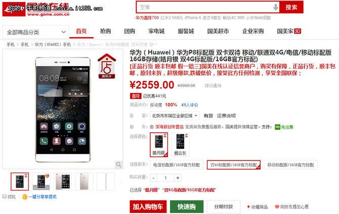 華為今年推出的最新旗艦手機華為P8分為了三個版本。由于高配版在硬件上提升不大,青春版主打中端機,所以其中的標準版最受歡迎?,F在小編在國美在線發現現貨最低價2559元,相比官網、京東等電商渠道2888元的價格不...