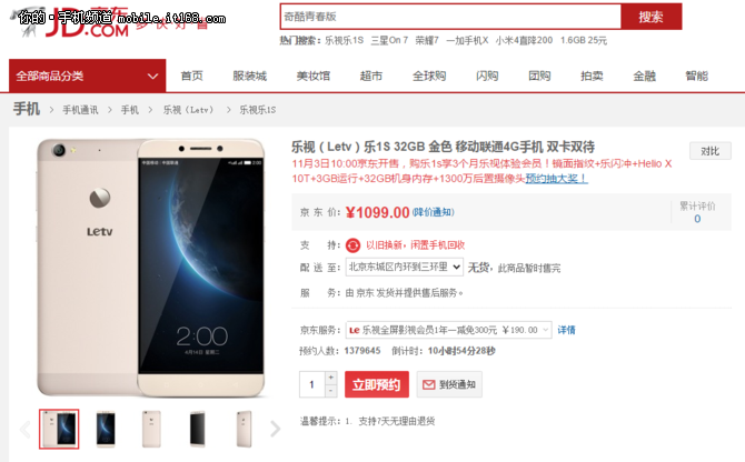 樂視在發布樂視超級手機1的半年后,帶來了小改升級款樂視超級手機1s,采用了金屬機身并新增了指紋識別功能,而售價方面卻比上代產品更低,達到了僅1099元的價格。將于今日上午10點在樂視商城與京東商城同步開啟首輪發售30萬臺,需要注意的是首輪發售僅面向預約用戶,預約將于今天上午9:30分截止,已經預約的朋友也不要忘記進行購買喲。