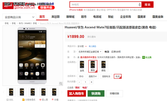 直達(dá)鏈接:電信/移動標(biāo)配版 華為Mate7僅1899元 ,,