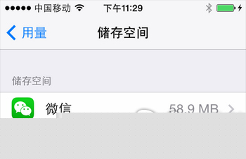如果要查看各個應用所占的存儲空間,仍然和之前的iOS版本的位置大體一樣,在“通用-用量”界面下點擊“管理存儲空間”就能看到了。