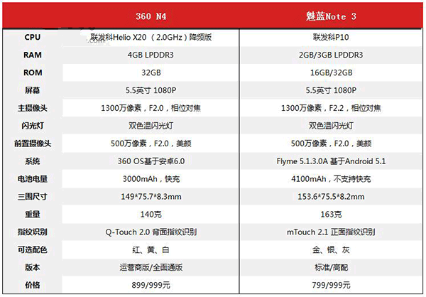 360手機N4和魅藍Note3哪個好 360手機N4對比魅藍note3(3)