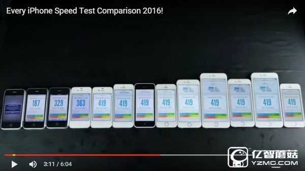 其實,即使不看結果,單單是這13部iPhone的同框就已經讓人對這一評測相當期待。外媒測試發(fā)現(xiàn),整體而言,新機型要比老機型表現(xiàn)更好一些。具體來講,在開機速度大比拼中,小身板兒的iPhone SE強勢奪冠,iPhone6s Plus、iPhone 6s、iPhone 6、iPhone 6 Plus這些老大哥全部敗下陣來,墊底的則是iPhone 4s。