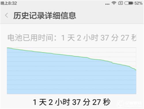 小米Max的電池容量為4850mAh,在一周的體驗內,愛范兒的體驗結論是:即使是一直抱著手機不放的重度用戶,小米Max的電量也足夠一整天使用。輕度的小游戲(體驗過程中玩海島奇兵)和網頁瀏覽可以支持一天半左右。但讓人遺憾的是,小米Max雖電量堅挺,但充電速度不盡人意,隨包裝配送的充電頭最高僅支持5V2A的充電,充電速度較慢,充滿電大概需要兩個半小時。