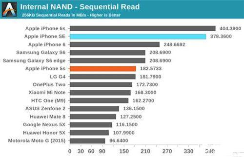 在iPhone SE中蘋果使用的是和iPhone 6s以及iPad Pro相同的控制器。AnandTech評測的是64GB版本iPhone SE,所以我們可以看看,相對較小的SSD無法像128GB和 256GB版本利用并行性,以獲得同樣的性能從而產生的潛在影響。本次對iPhone SE存儲性能的測試,使用的工具是 StorageBench。