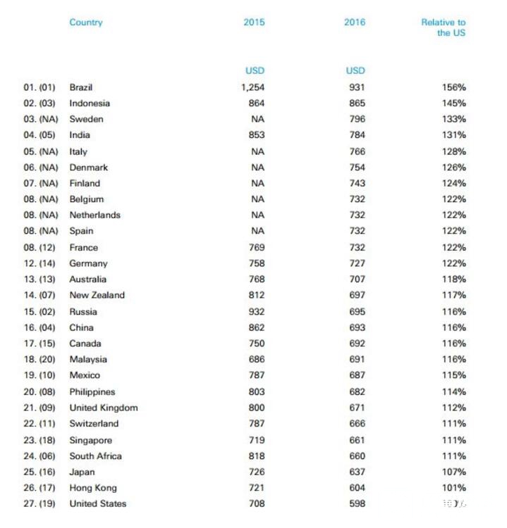 看了這份報告,中國用戶恐怕心理就平衡多了,因為中國在榜單中排名第十六,iPhone的售價比德國、法國和澳大利亞等發達國家都要低。不過要說購買iPhone的最佳地點,還得是美國和香港。