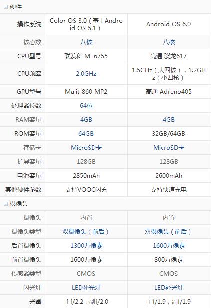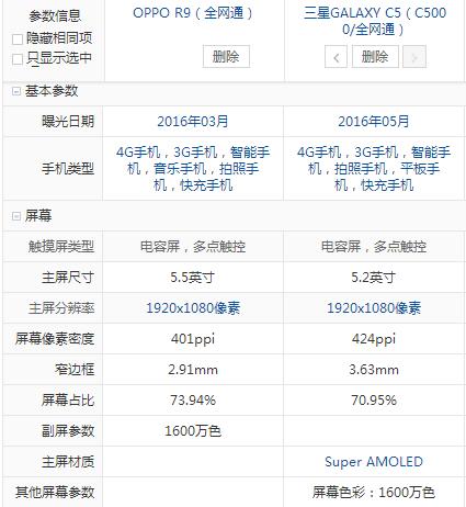 三星C5和OPPO R9配置參數(shù)全面區(qū)別對比: