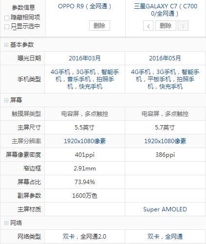 三星 C7和OPPO R9配置參數(shù)全面對比評測: