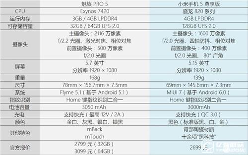魅族PRO5 與小米5 尊享版基本配置參數(shù)對比: