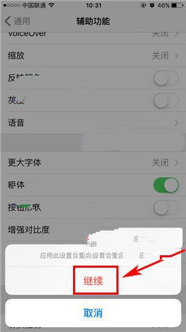 2)接著把【粗體文本】那欄右邊的橢圓往右拉打開即可,彈出窗口后點(diǎn)擊【繼續(xù)】重啟就行了。(如下圖)