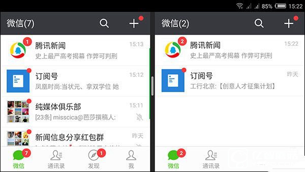 同時,nubia Z11 Max還支持“應用分身”功能,支持微信、QQ“分身”。若是再結合“全局分屏”功能,則將用戶體驗提升到了新的高度。不難想象,一部手機,同時登錄兩個微信,而且可以在同一個屏幕上顯示,如下圖所示,新消息一目了然,無需再切換,兩個號可以輕松應對,如同擁有兩部手機一般。