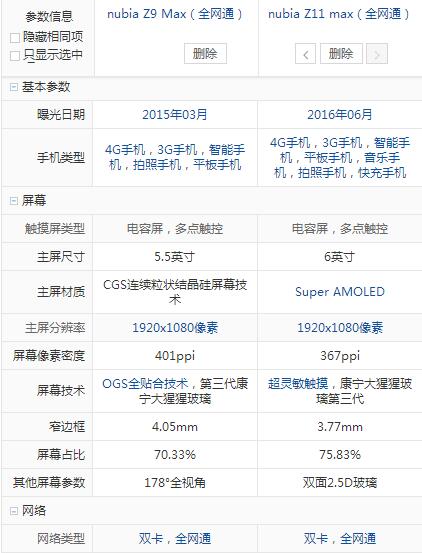 nubia Z11 Max與nubia Z9 Max詳細(xì)配置參數(shù)區(qū)別對比: