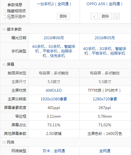 一加手機(jī) 3和OPPO A59配置參數(shù)詳細(xì)對(duì)比: