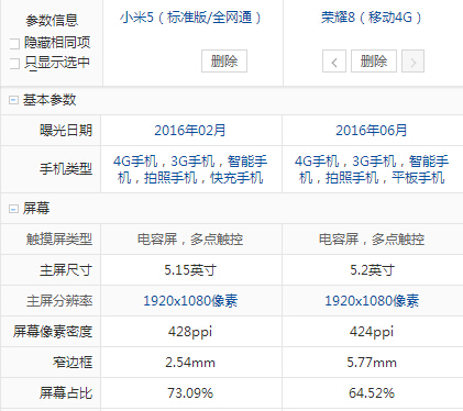 榮耀8和小米5配置參數(shù)詳細(xì)對比: