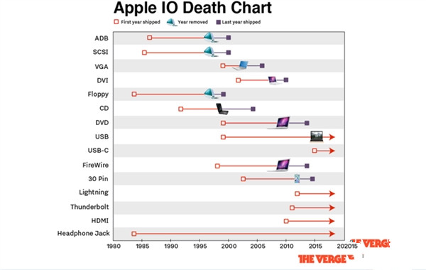 報道中提到,蘋果對接口的選擇上一直都領先其他公司。通常蘋果支持一種接口時間為15年,但耳機孔是個例外,因為從1984年開始支持一直到現在,也就是說已經過去了32年。