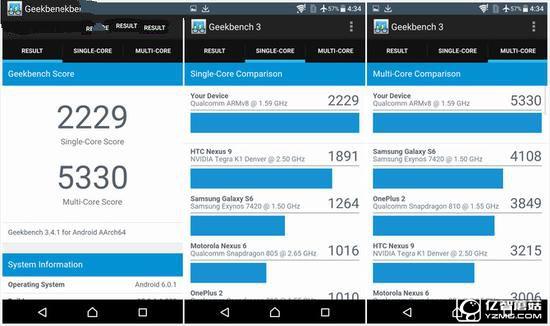 從跑分結果來看,Xperia X Performance的綜合性能無疑是業界的一線水平。安兔兔跑分輕松跨越13萬,Geekbench 3.0的表現也可圈可點,CPU單核跑出2229、多核5330的好成績。