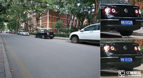 解析力方面,索尼Xperia X Performance有著得天獨厚的優勢,通過放大車輛,我們在索尼的樣張中還可以清晰地看出車子的型號,而iPhone雖然可以分辨出字符,但是顯然沒有索尼的呈現清晰銳利。