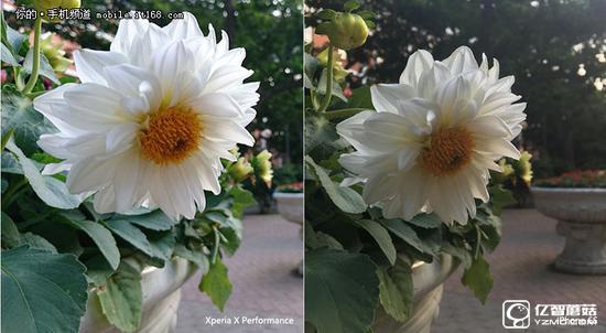 當然,索尼的這種畫面風格調教也未必是減分項。這組白色花朵樣張中,索尼的白色顯然比iPhone更加干凈,綠色也更加討好人眼,觀感上佳。另外由于驍 龍820搭載的全新ISP支持動態對比度調整,暗部的花蕊細節也能夠清晰呈現,iPhone偏于真實的顏色還原,加上欠于索尼的暗部表現,整體觀感也就差 了一些。