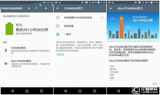 而除了這些之外,索尼出色的省電功能“STAMINA模式”也有進一步升級,除了對應用程序進行限制和聯網外,還可以在低電量模式下開啟基礎模式,僅允 許啟用系統核心功能,這點也是目前的主流做法。這也使得索尼Xperia X Performance的續航有了更好的表現。