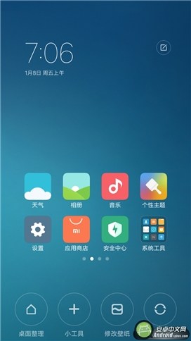 相比之前,MIUI 8的系統(tǒng)應(yīng)用圖標依舊采用了圓角矩形,但在例如安全中心、瀏覽器等的一些圖形上進行了改進,整體更為協(xié)調(diào)與直觀。此外,在主界面點按菜單鍵后,不僅可以對正在運行的應(yīng)用進行一鍵清理操作,更可直接打開音樂播放器,整個系統(tǒng)的娛樂性相比之前也有所提升。