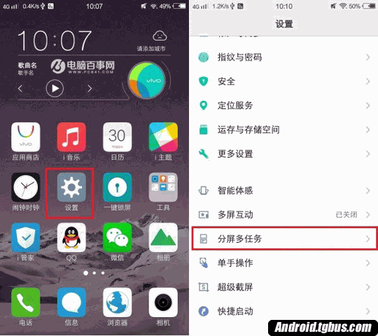 第一、打開vivo x7界面,進(jìn)入「設(shè)置」,然后再進(jìn)入「分屏多任務(wù)」設(shè)置。